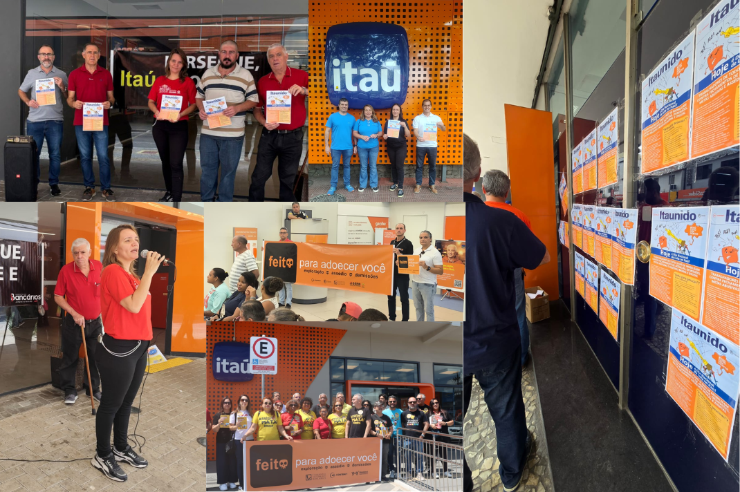 Trabalhadores protestam contra fechamento de agências, demissões, metas abusivas e assédio moral e digital Bancárias e bancários do Itaú estão mobilizados em todo o país