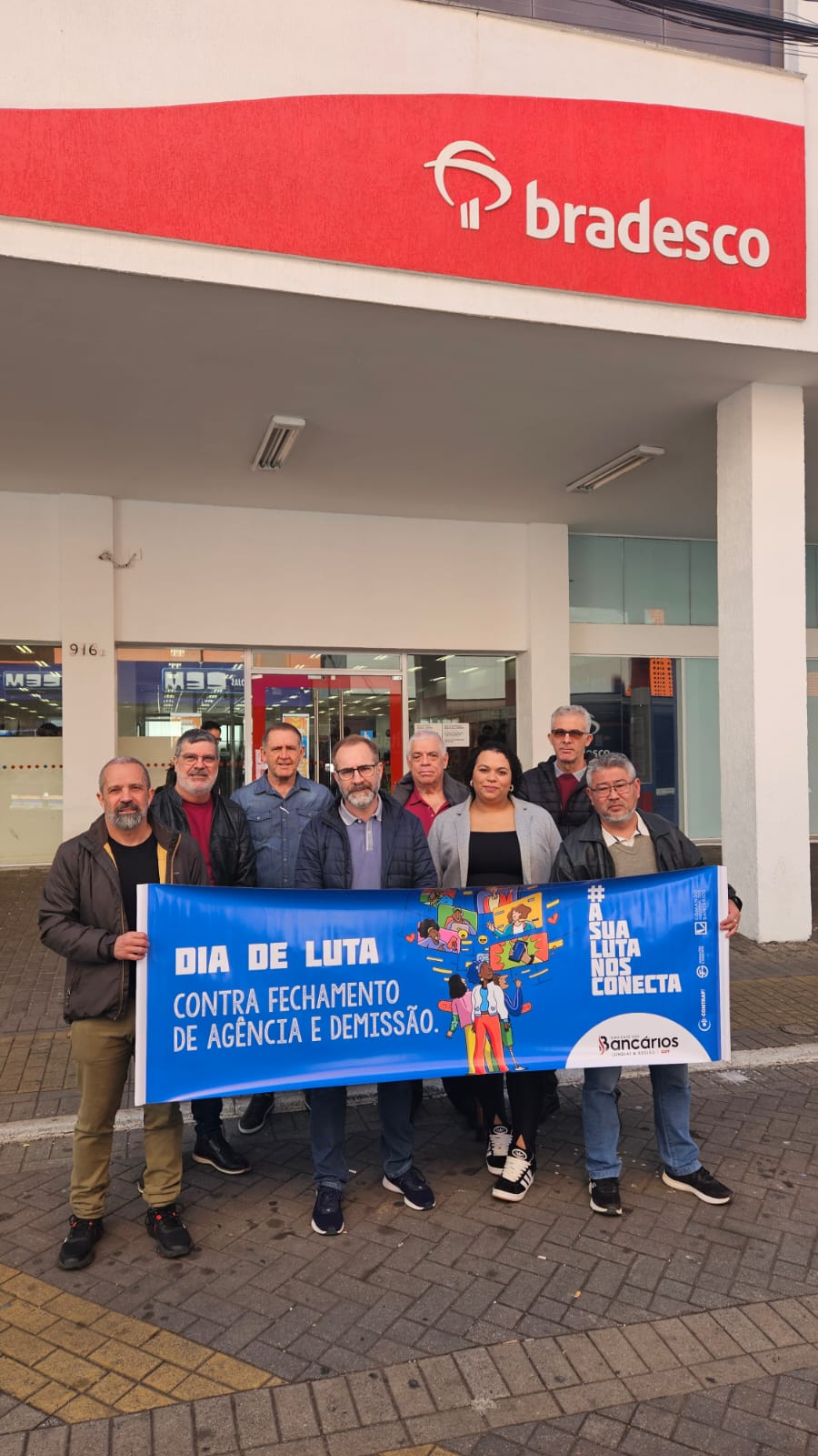 Nesta terça-feira (12), bancários de todo o Brasil participaram do Dia Nacional de Luta contra as demissões e o fechamento de agências do Bradesco. A mobilização, organizada pela Confederação Nacional dos Trabalhadores do Ramo Financeiro (Contraf-CUT) e pelas federações e sindicatos filiados, levou faixas, cartazes e mensagens de protesto às portas de diversas unidades do banco.