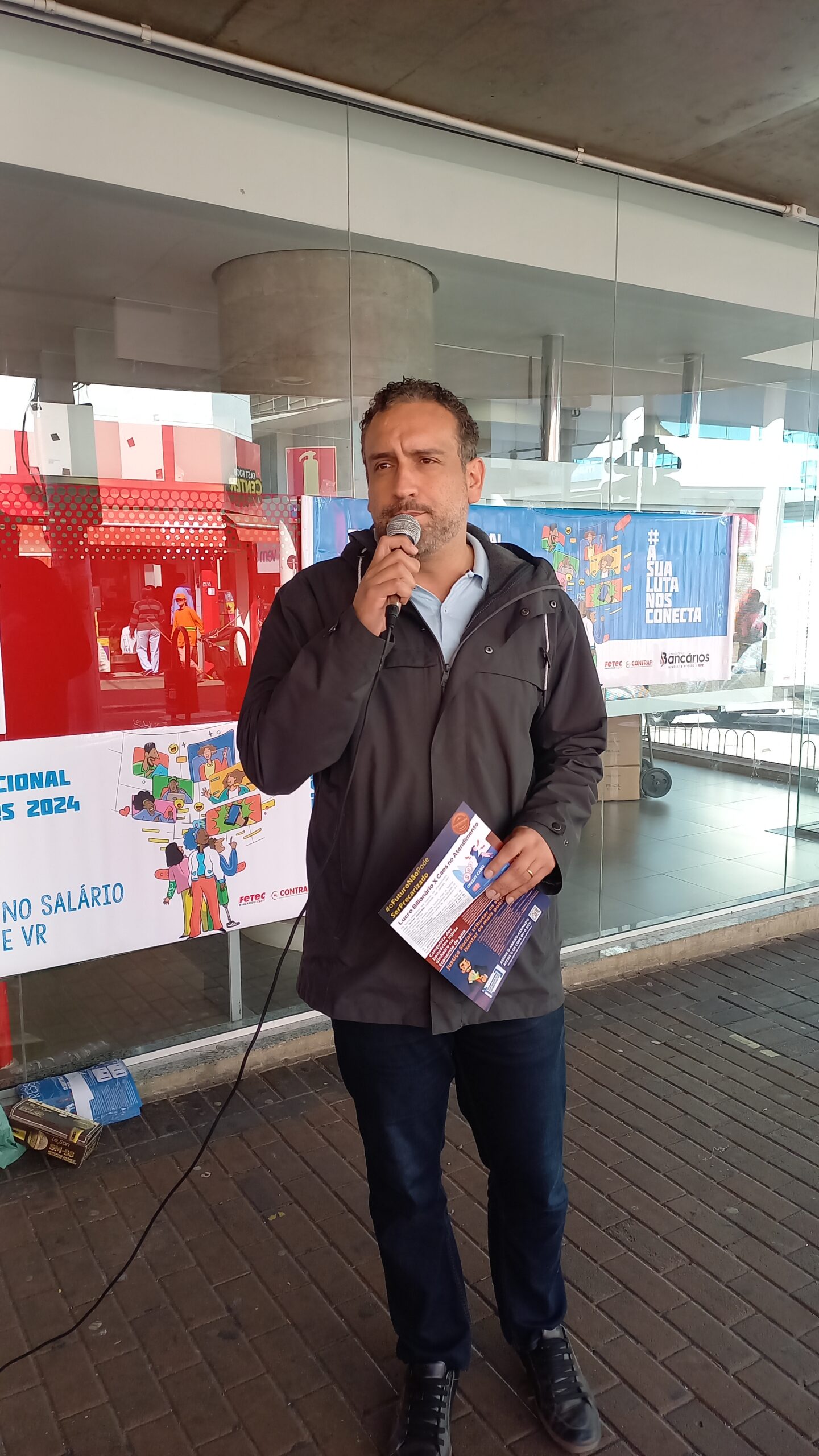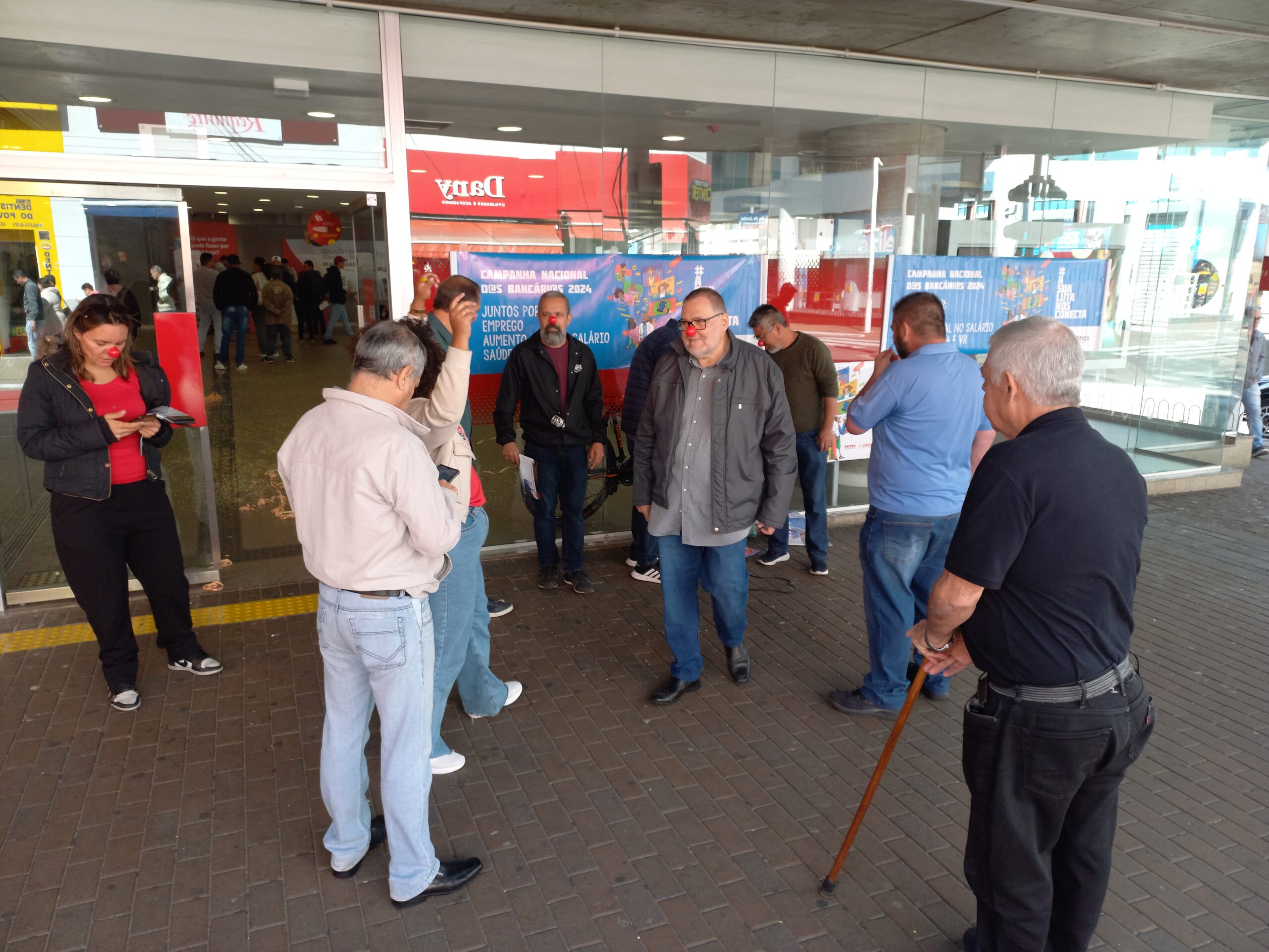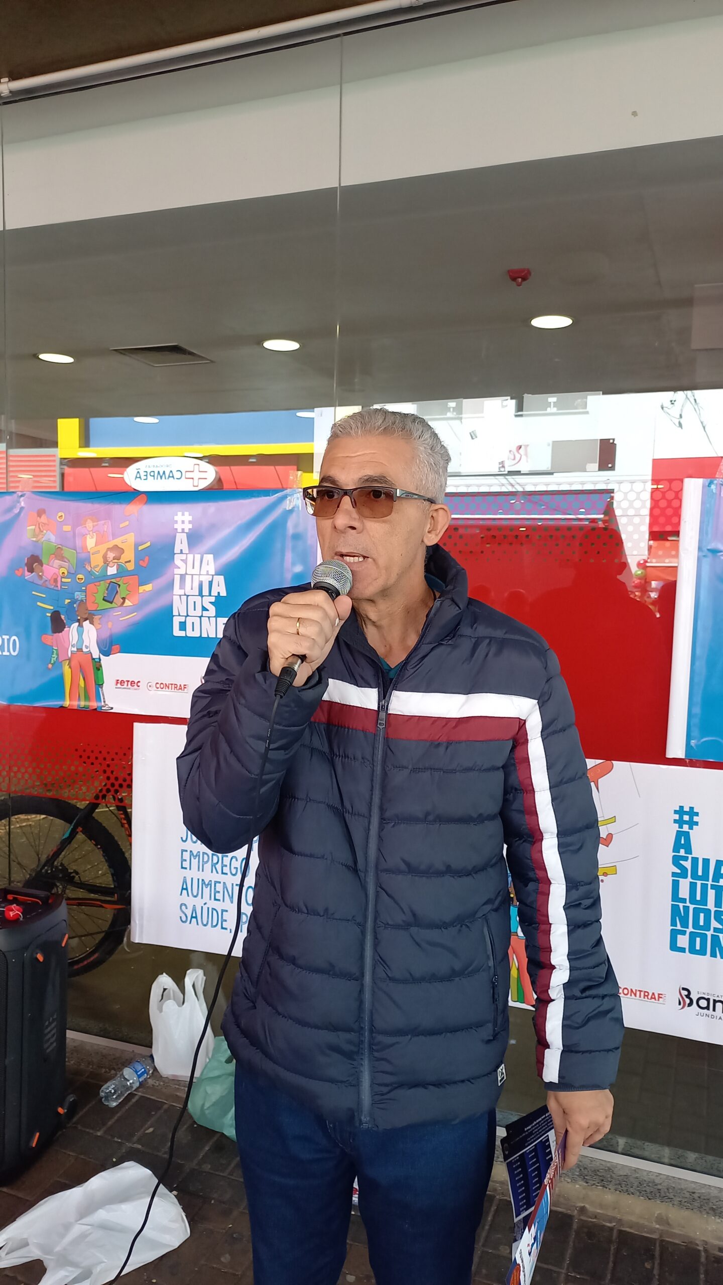 Na manhã desta segunda-feira (12) houve manifestação de bancários e bancárias em todo o país. Em Jundiaí, o sindicato se reuniu em frente a agência do Santander na rua Barão de Jundiaí.