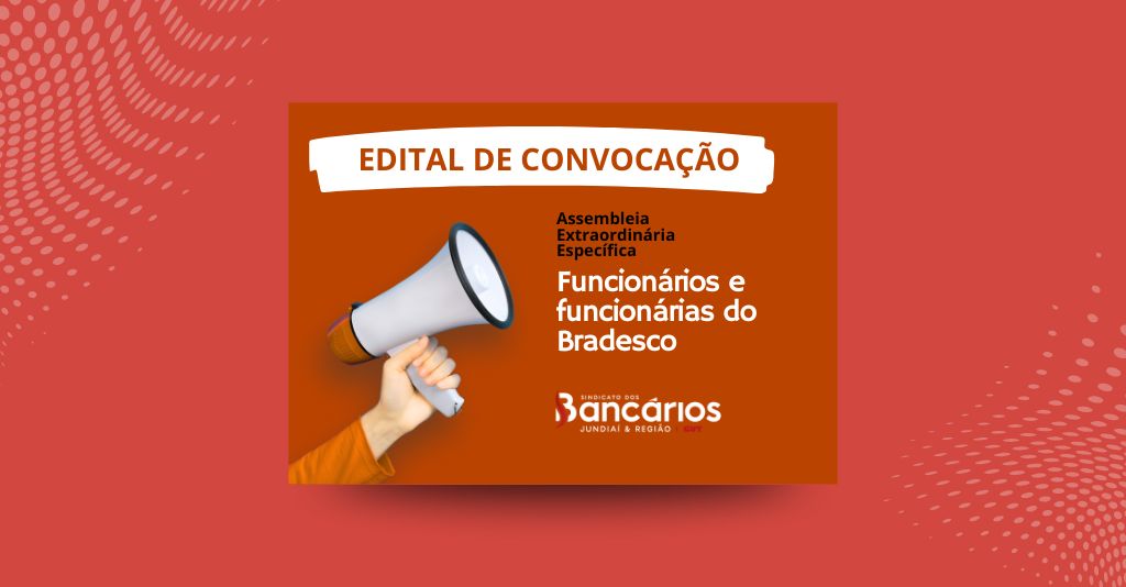 Sindicato dos Empregados em Estabelecimentos Bancários de Jundiaí e Região, inscrito no CNPJ/MF sob o nº 58.377.441/0001-97, Registro sindical nº 24000.001653/90-11 por seu presidente abaixo assinado, convoca todos os bancários, sócios e não sócios, da base territorial deste sindicato, que prestam serviço para o Banco Bradesco S/A para a reunião assemblear específica remota a ser realizada no dia 14 de novembro de 2025 com votação das 09:00 horas até às 18:00 horas, precedida de plenária no dia 13.11.2025 de forma híbrida às 17 horas na Sede do Sindicato – Rua Prudente de Moraes, 843, Centro, Jundiaí-SP, para deliberação da seguinte pauta: Aprovação do Acordo Coletivo de Trabalho sobre Registro Eletrônico de Jornada de Trabalho com vigência de dois anos a contar da sua assinatura, na forma disposta no site oficial do Sindicato na internet.