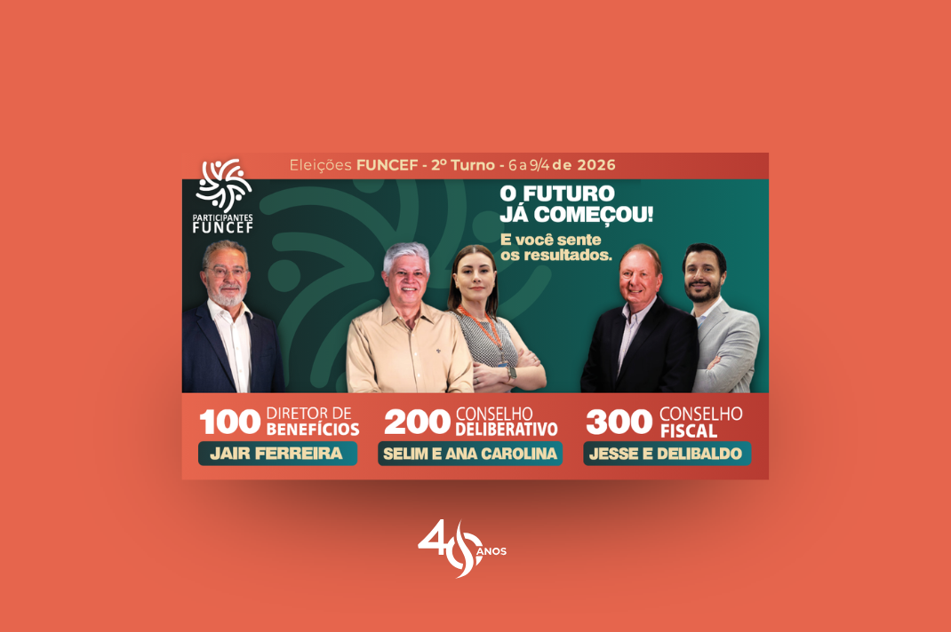 A votação no segundo turno ocorre das 10h do dia 6 de abril até as 18h do dia 9 de abril, por meio dos canais eletrônicos disponibilizados pela Funcef para os participantes.
