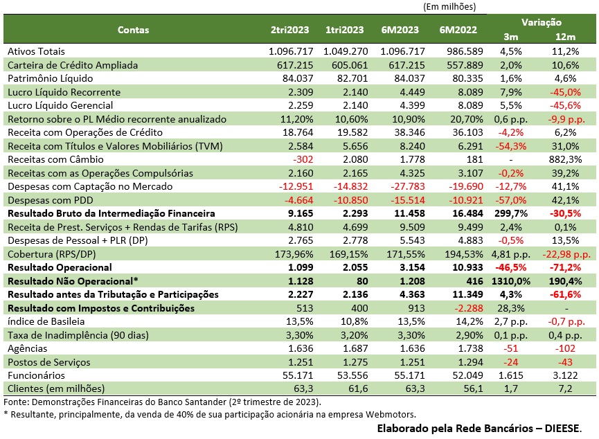 Lucro Semestral do Santander Brasil cai 45% em 12 meses, mas apresenta recuperação no período, com alta de 7,9% no segundo trimestre de 2023